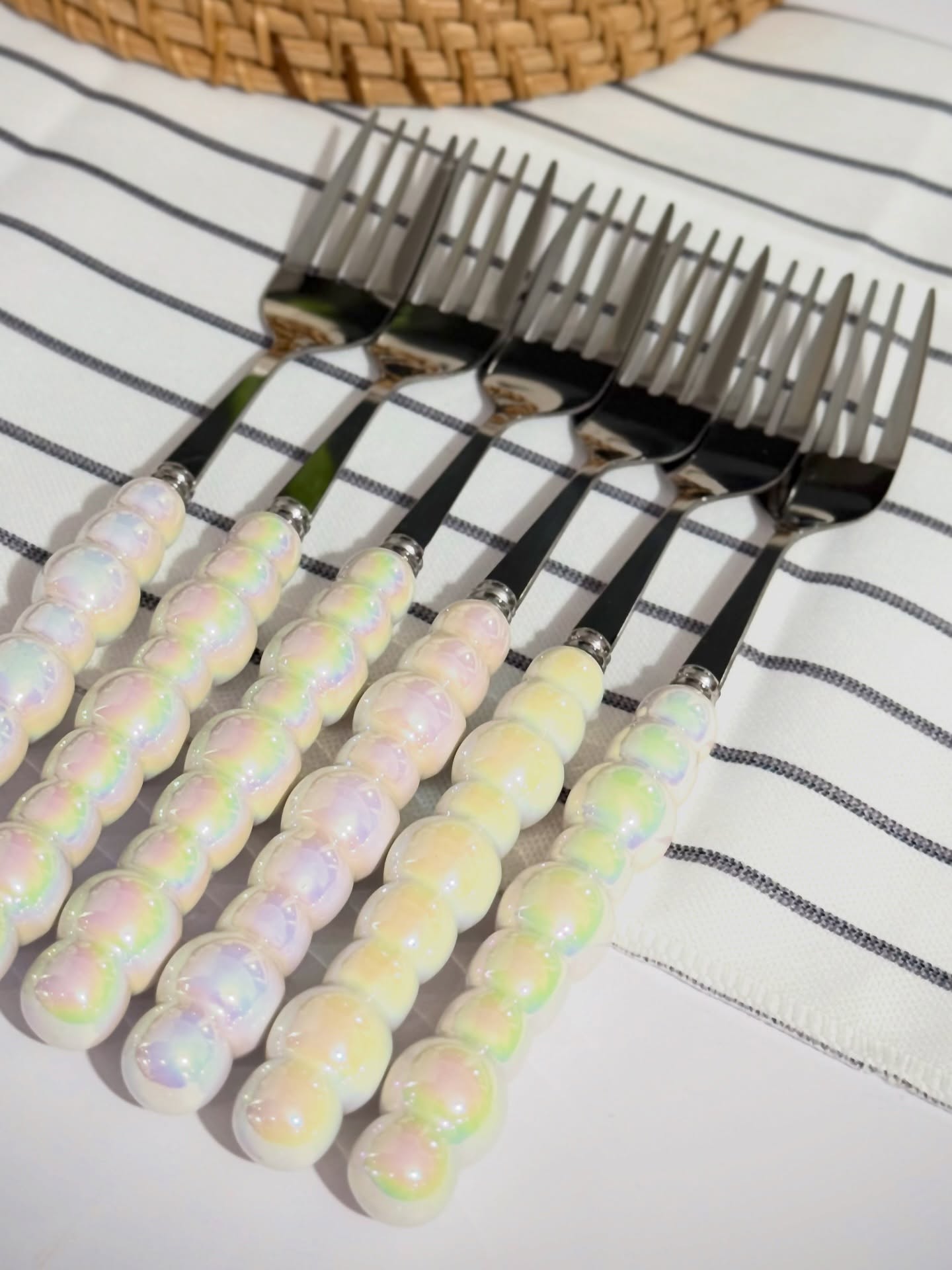قاشق و چنگال مرواریدی هولوگرامی🌈